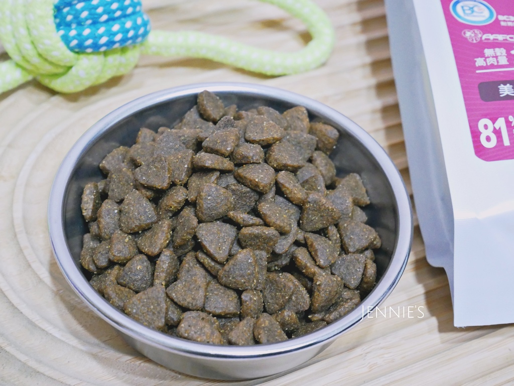這款含有85%肉含量、15%蔬果草本植物、無高升醣穀類!使用新鮮的去骨火雞肉,有豐富又容易消化的蛋白質,可以增強狗狗肌肉發展,另外還有添加去骨鱒魚,含有DHA、蛋白質含量高,最重要的就是低脂肪啦!另外藍莓也是對毛孩非常好的超級食物,不只增加狗狗靈活度,還能保護關節喔!博美犬真的非常需要,尤其我家哈比還有先天性膝蓋異位問題!